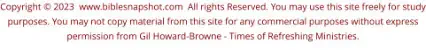 Discover the New Testament at a glance! BibleSnapshot.com provides clear, easy-to-read sum-maries of each book, including details on the author, time period, and key themes. Each chapter overview is designed to help you grasp the message quickly, with links to BibleGateway for deeper study. Whether you're a seasoned Bible scholar or new to the faith, this resource is here to strengthen your understanding of God's Word. We continually update the site with fresh insights, and while I strive for accuracy, feel free to reach out if you spot an error. About Me I'm Gil Howard-Browne, a minister for 55+ years and passionate about helping believers grow in their faith. I've preached in 172 U.S. cities and 45 international cities, sharing the life-changing power of the Gospel in about 5,000 meetings over the past 35 years since moving to the USA from South Africa. So many Christians lack a strong foundation in Scripture, and how God has blessed us through the finished work of Christ on the Cross and the action of the Holy Spirit in the life of the believer. My goal is to make the biblical principles of the New Testament more accessible. This site is completely free, but if you'd like to support this work, you can do so on our main ministry website. Click Here. Contact me at gil@biblesnapshot.com